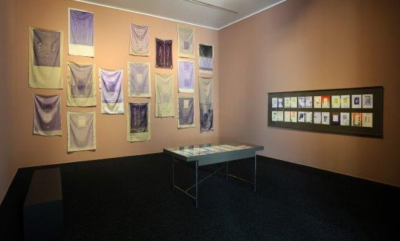 Exhibition with monotype banners and the MsHeresies series at Museum Folkwang, Essen. Curated by Thomas Seelig.