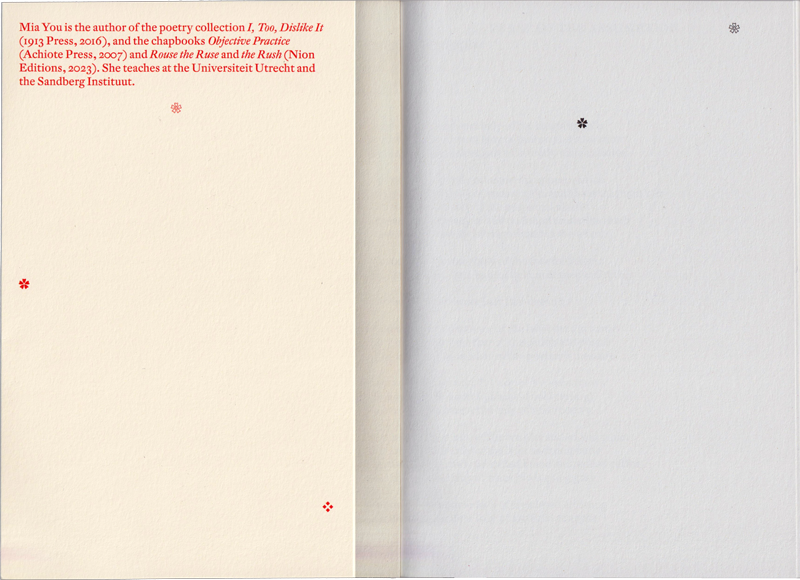 The book is offset printed in black and a three-colour iris at Drukkerij Raddraaier. Photo documentation by Temra Pavlovic.