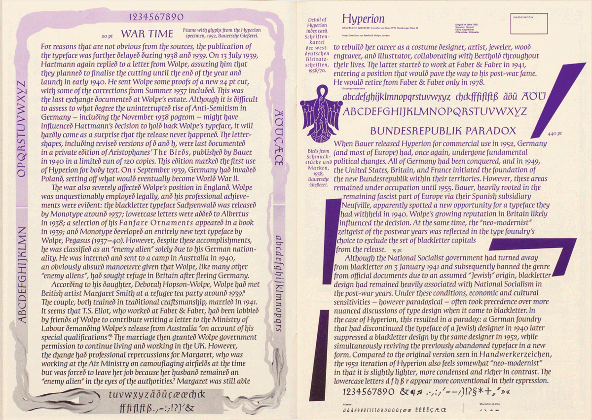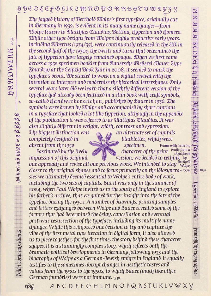 Specimen design for the typeface Handwerk by Hammer (David Schatz & Sereina Rothenberger) and Philipp Herrmann. 24 pages, two colour iris print.