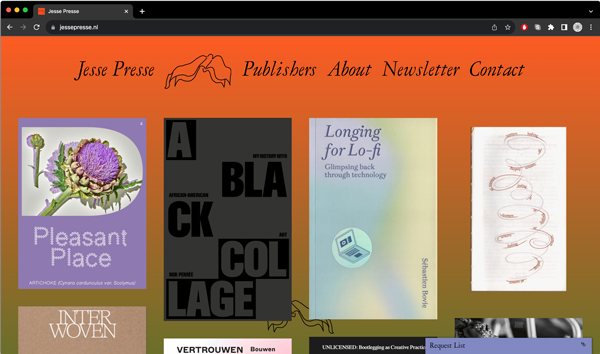 Design for small press distributor Jesse Presse. Web development by Elliot Cost.