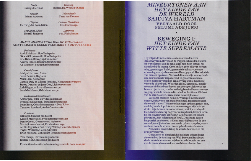 Design of the script for Minor Music at the End of the World written by Saidiya Hartman.